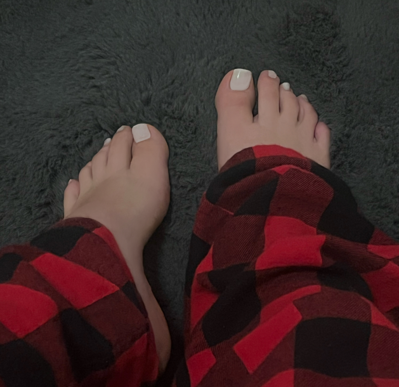 Meine weichen Sohlen und zarten Zehen kuscheln sich in meinen Schlafanzughosen auf einem weichen Boden. ✨