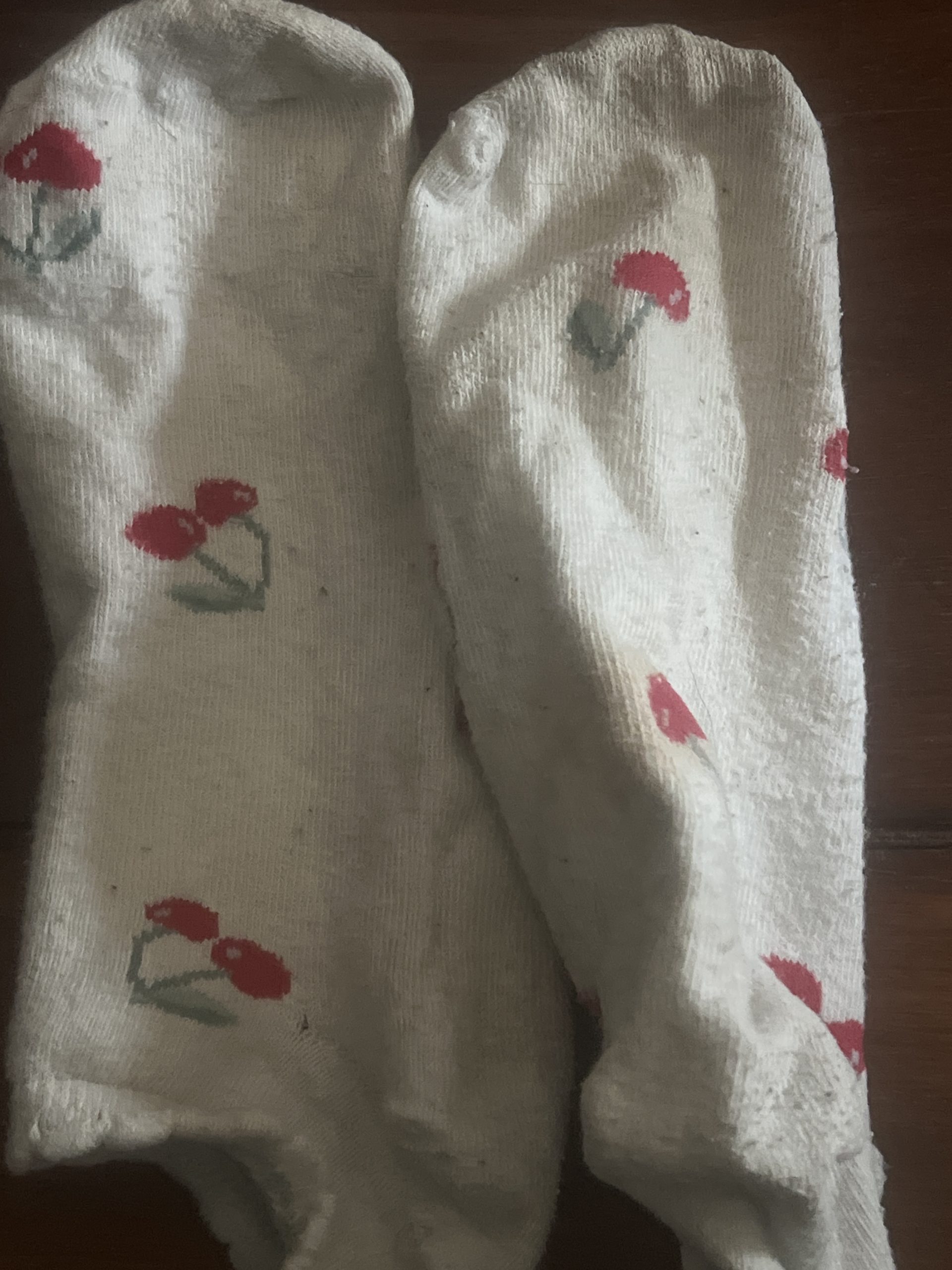 Ich verkaufe schöne getragene Kirsch Socken. In Größe 39-41. mit Rüschen.