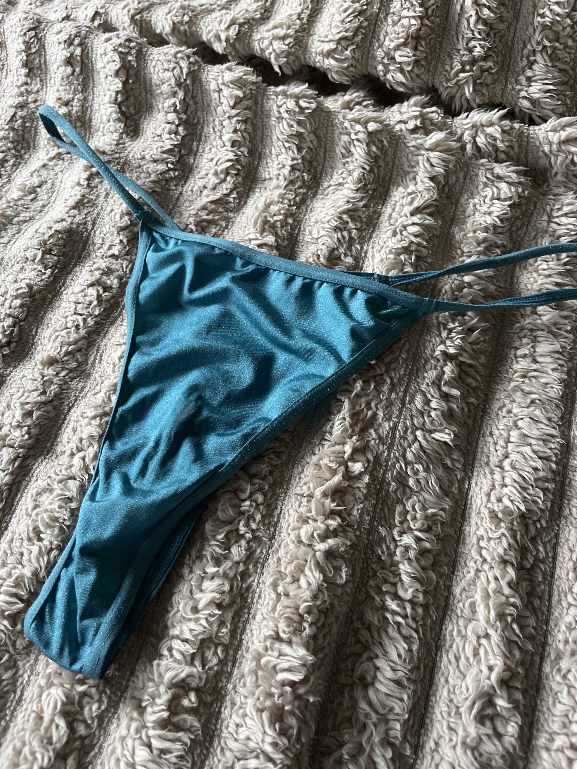 Schön eingetragener String mit Ausfluss und angenehmen Duft,