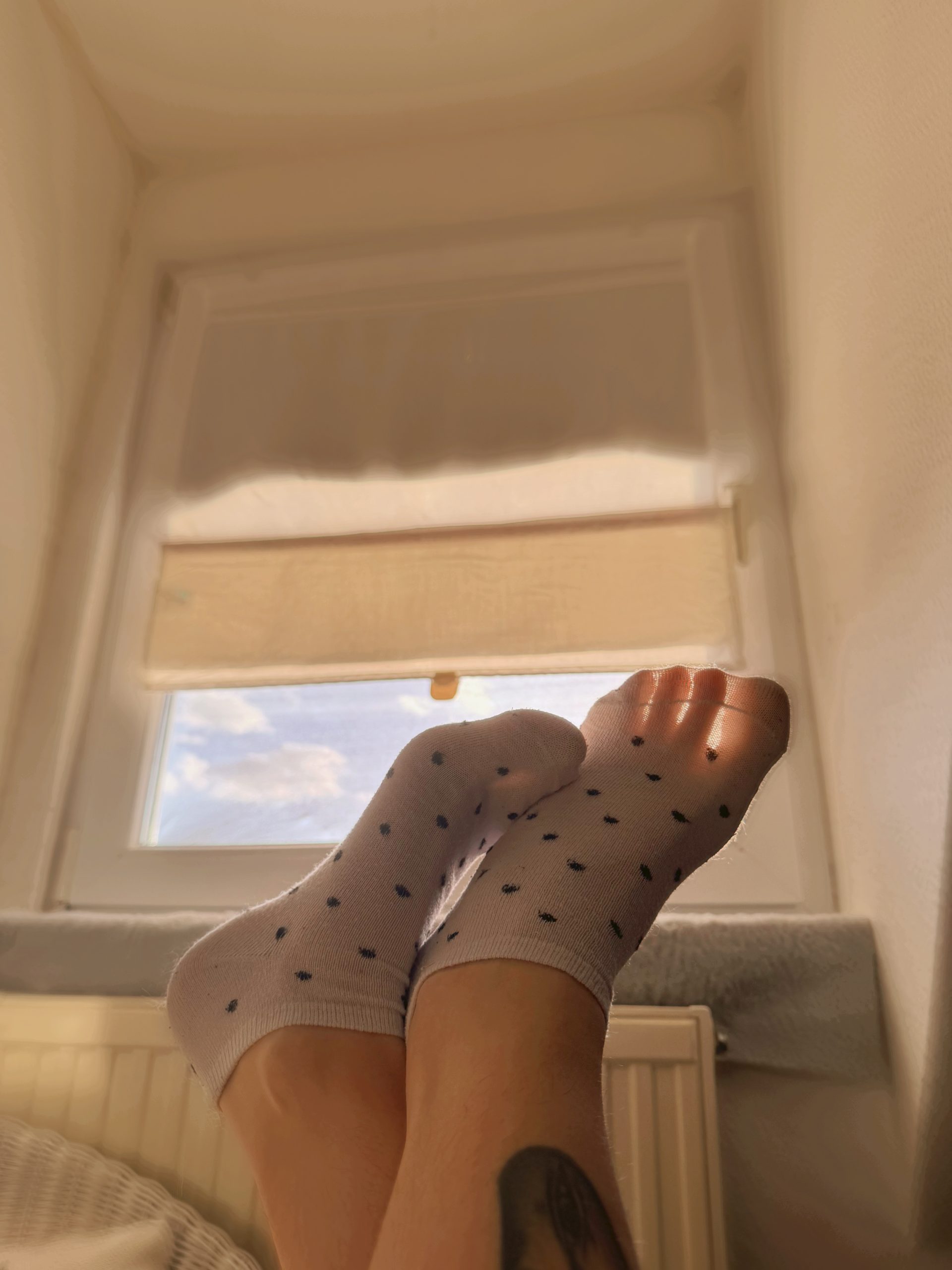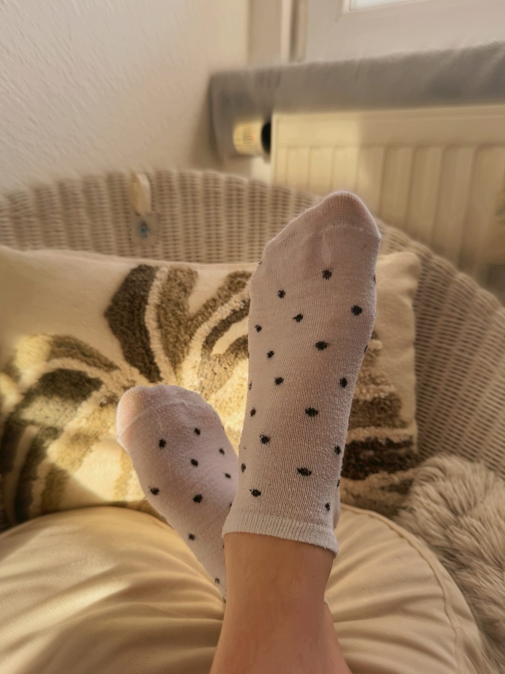 Diese weißen Strümpfe mit schwarzen Punkten haben mich den ganzen Tag begleitet – unterwegs, zuhause und bei allem, was dazwischen passiert ist.