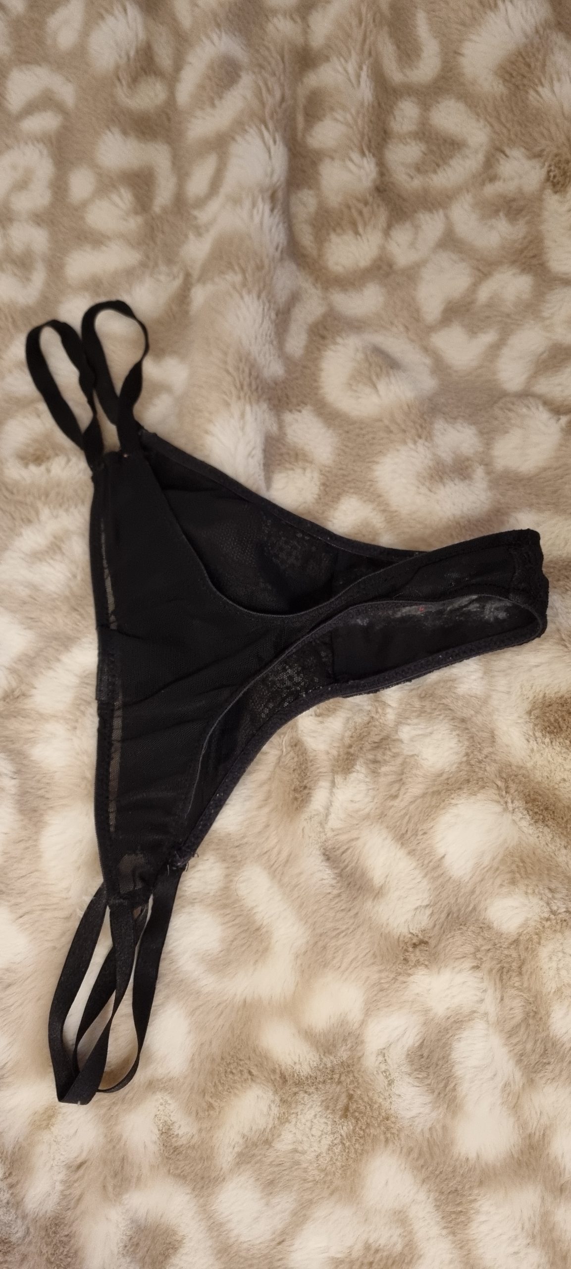 Dieser schöne String-Tanga wurde über vier Tage hinweg von mir getragen – Tag & Nacht! War ebenfalls bei meinen Trainingseinheiten im Gym mit dabei 😉